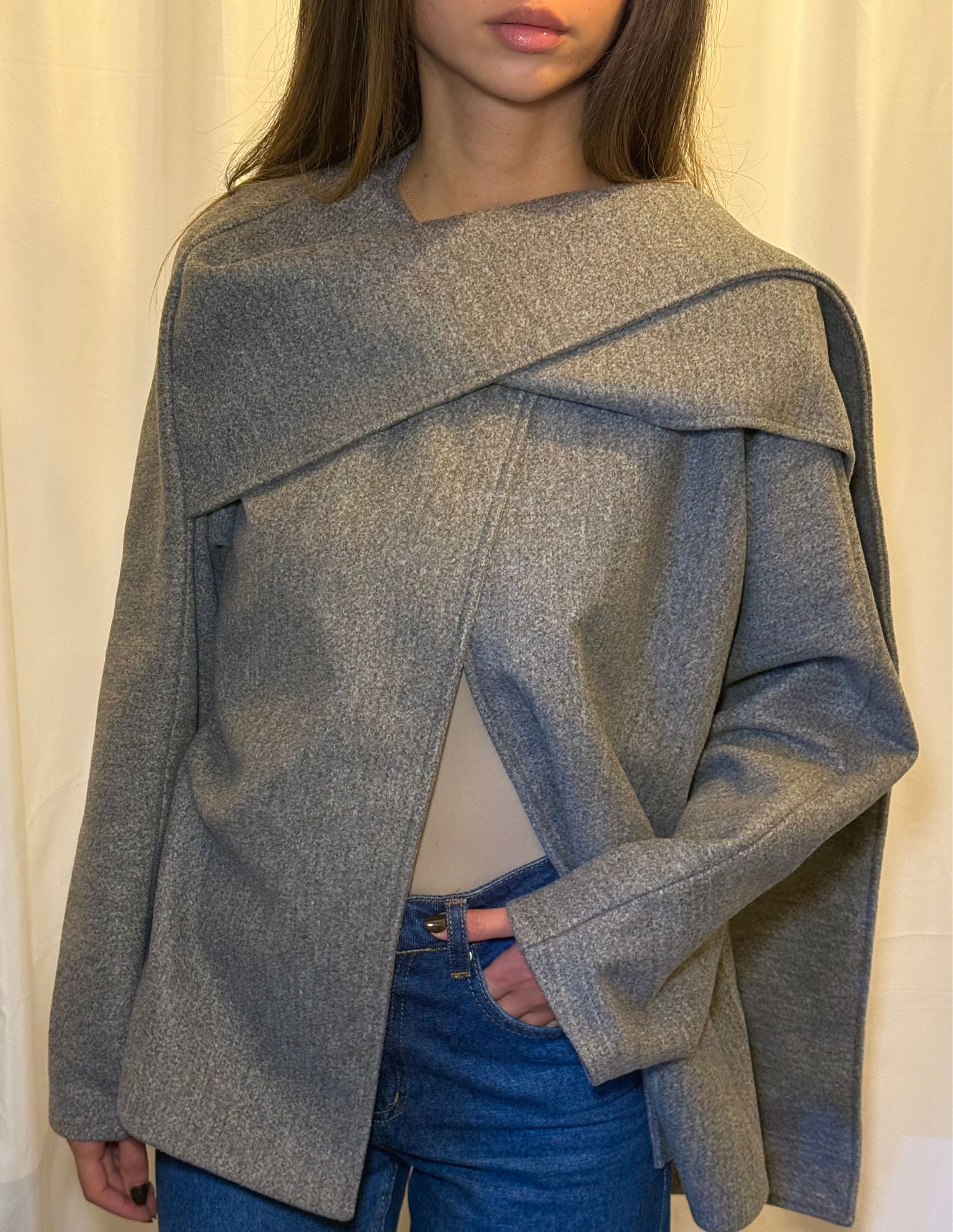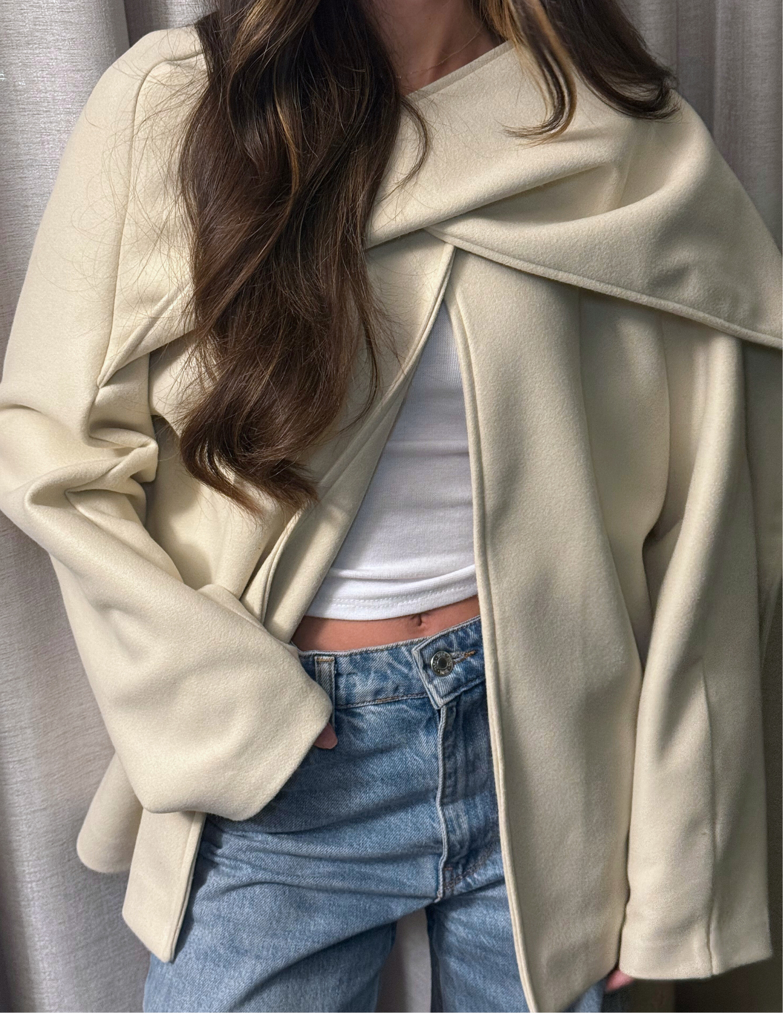 The Celeste jacket is where elegance meets everyday comfort. Designed with a built-in scarf for an elevated look, this piece wraps you in warmth while adding a refined touch to any outfit.