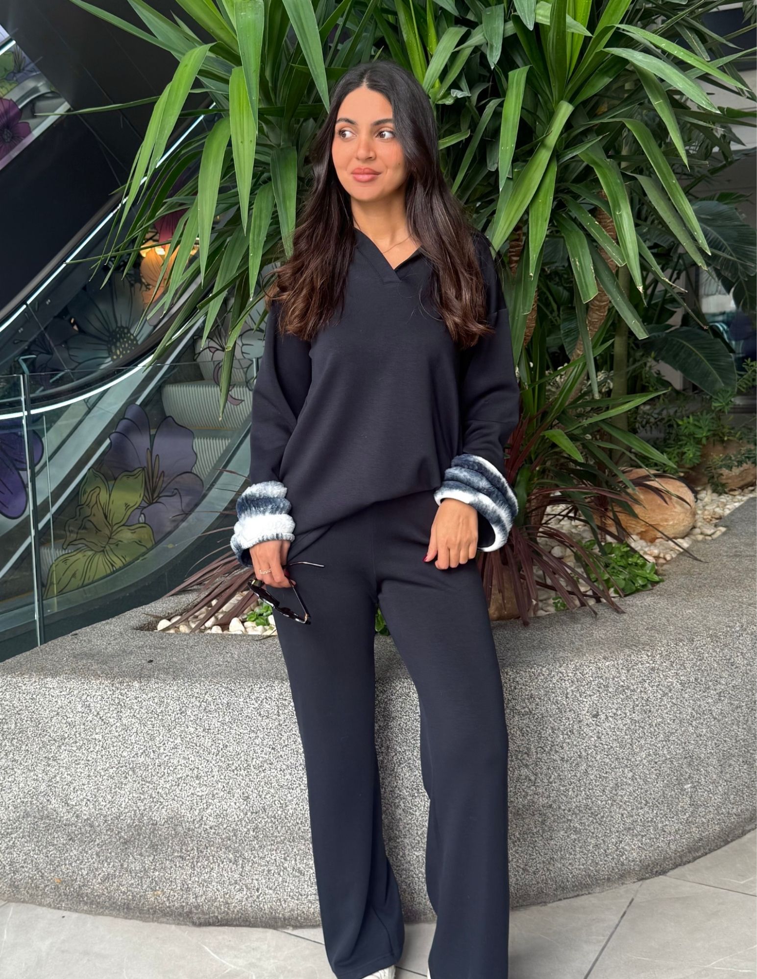 The Elan Set is all about understated luxury. Designed in a soft, cozy fabric to keep you warm, this set is elevated with fur detailing on the sleeves.
